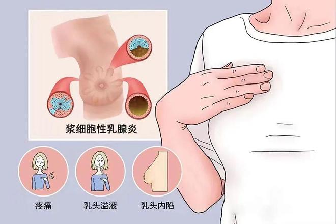 浆细胞性乳腺炎主要是由于乳腺导管内的脂肪性物质堆积,引起乳腺导管扩张,随着堆积物的分解,会引起导管周围的化学性刺激和免疫性反应,导致大量浆细胞浸润,故称浆细胞性乳腺炎。