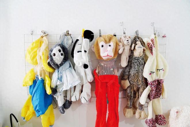 2021年3月8日,江苏省扬州市一名“玩偶修复师”的家中挂着客户送来等待修复的玩偶。图/IC