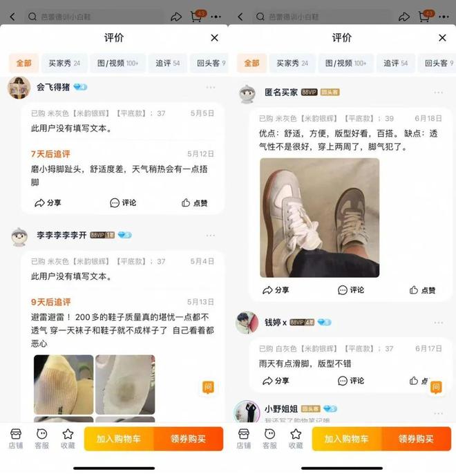反映到市场,在黑猫投诉平台,达芙妮共有1659条投诉,与去年4月的624条相比,近一年半时间,投诉量增长165%,投诉大多跟鞋子质量、舒适度和服务相关。在天猫达芙妮官方旗舰店,多款鞋的评论区也都出现“磨脚” “不透气”的吐槽。