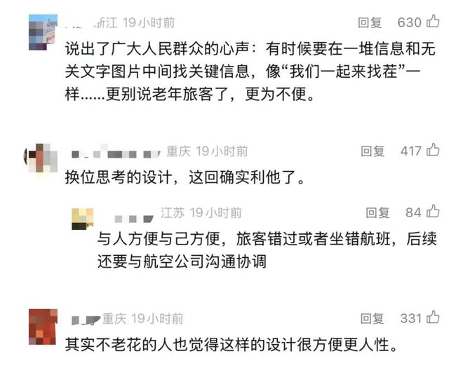 从网友的留言来看,大家对于登机牌上信息“不好找”“不清晰”“字体小”等问题,早有“积怨”。