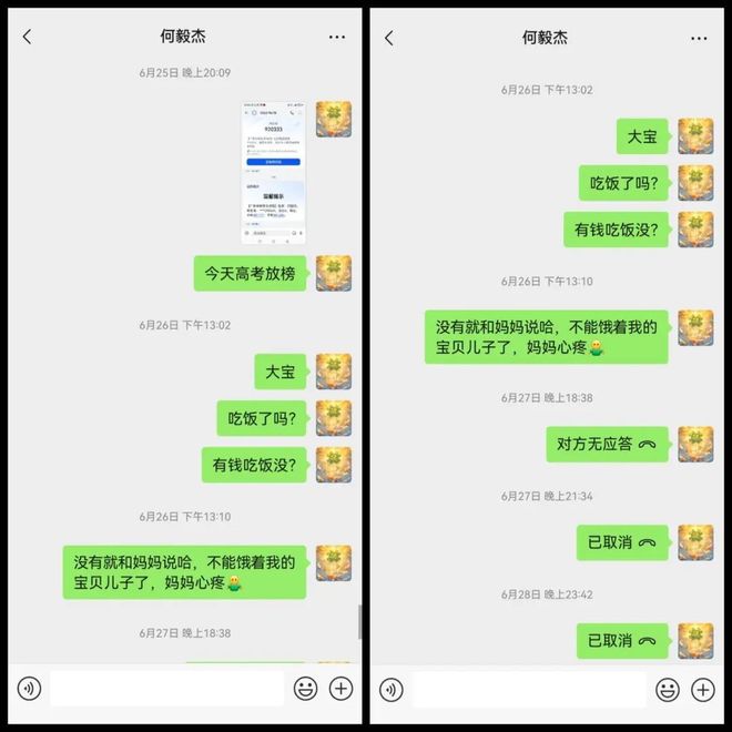 据孩子妈妈吴女士透露,孩子名叫何毅杰,19岁,身高172cm左右,体重56kg左右,体型偏瘦,戴有黑色眼镜,下巴上有一颗特别明显的大黑痣,“孩子今年复读高考完之后,去了广州一家公司打工。做的工作主要内容是语音直播,以娱乐互动为主。”