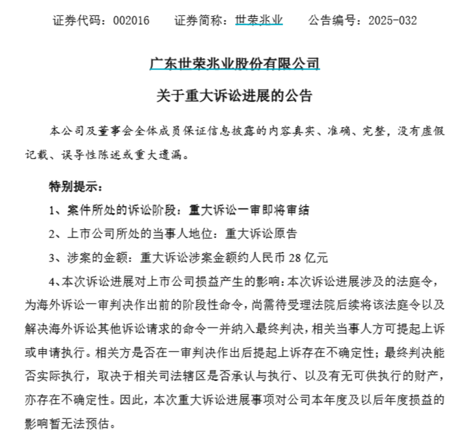 7月24日,A股上市公司世荣兆业(002016.SZ)公告称,公司就原董事长梁家荣侵犯公司权利的行为向美国加利福尼亚州圣马特奥县高等法院提起诉讼,诉请追回梁家荣违背忠实、勤勉义务,背信损害公司利益取得的不当得利并要求其对本公司的损失予以赔偿。