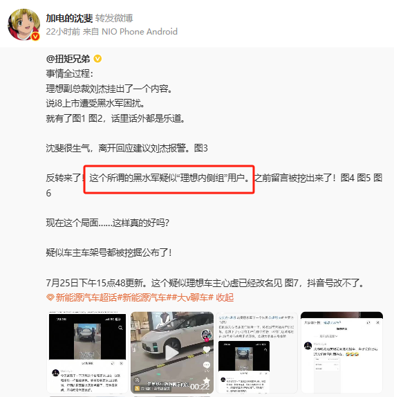 蔚来、理想高管互怼,网友爆料:编造言论,疑似“钓鱼”引争议