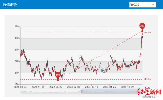 据上海证券报报道,世界铂金投资协会亚太区总经理邓伟斌表示,目前铂金价格处于历史估值偏低水平,价格的上涨主要由市场基本面与投资者情绪双重驱动。