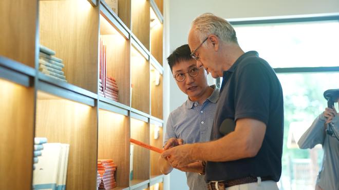 “中国人看东西的时候,和世界(很多地方)看东西不一样。很简单,你看‘猫头鹰’,在世界很多地方它就是‘猫头鹰’,但中国人怎么看它的?它的头像猫,身体像鹰,所以它是猫头鹰,这是一个故事。”7月25日下午,益阳清溪村,蝉声四起的中国当代作家签名版图书珍藏馆,汉学家白鑫以“猫头鹰”为例,论述中国文字、中国文学的特别,“中国文字本身就是一个很含蓄的语言,中国文学是生动的哲学。”