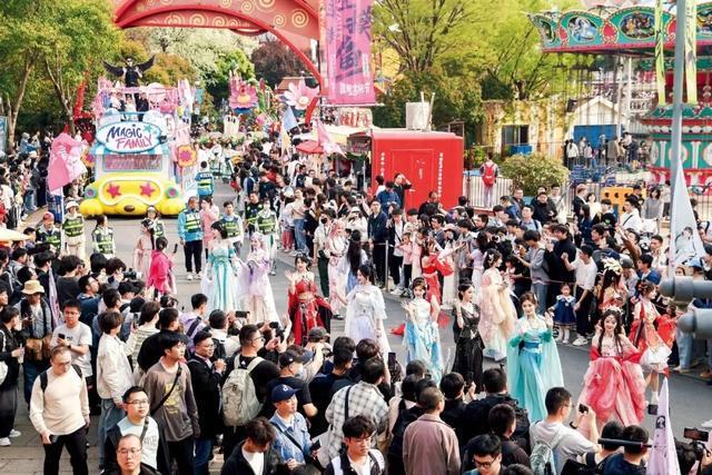 上海欢乐谷国潮文化节,NPC在巡游时与游客互动。图/受访者提供