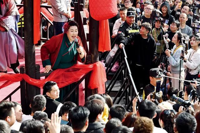 2024年3月28日,河南开封万岁山武侠城,“王婆说媒”吸引大量观众。图/IC