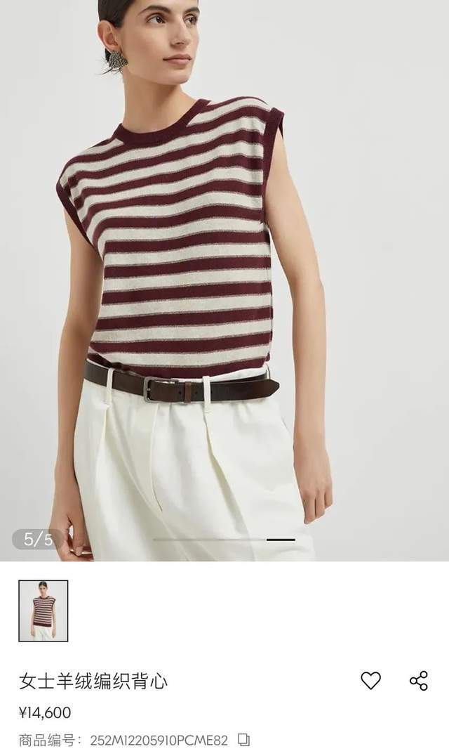 同样走静奢路线的Brunello Cucinelli,则钟情于被称为“金羊毛”的亚洲绒山羊,其羊绒编织条纹背心以中性色调和隐形logo设计,轻松演绎“低(有)调(钱)奢(任)华(性)”。