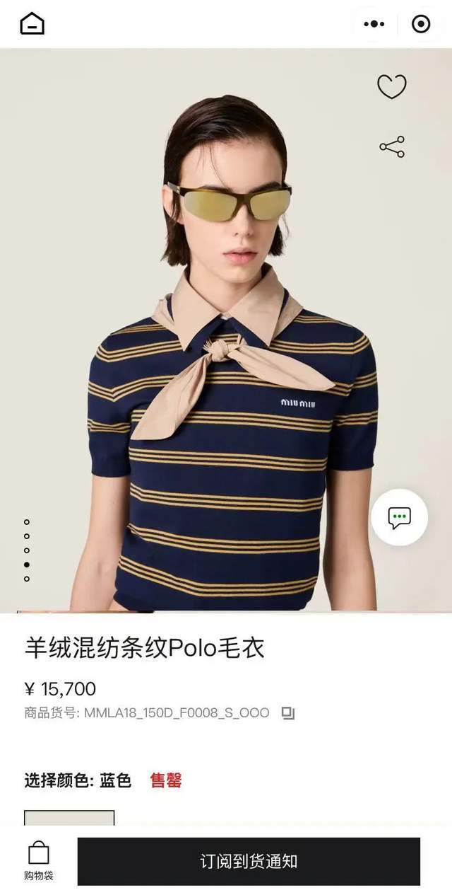 MiuMiu今年推出的羊绒混纺条纹Polo衫,以沉稳的海军蓝打底,撞上多巴胺姜黄色条纹,静奢中带着时髦叛逆。