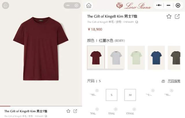 如静奢风鼻祖、意大利奢侈品牌Loro Piana的“The Gift of Kings”系列,官方介绍其羊毛取自“品质上乘的精细美利奴羊”。常规剪裁、没有绚丽的色彩和夸张的logo,一件看似普通的羊毛T恤,售价超过1.8万元,很多尺码仍是缺货状态。