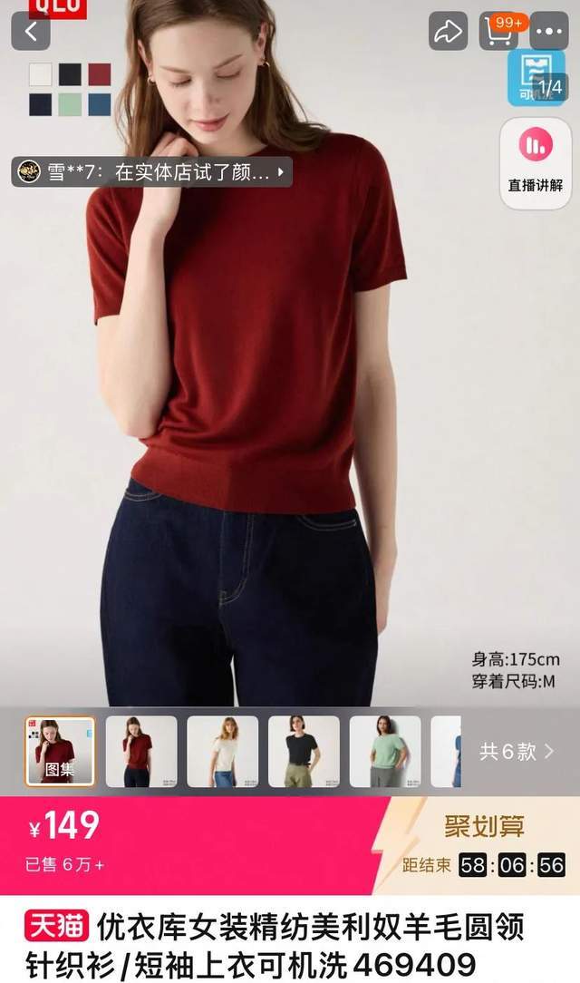 在大众市场,优衣库以“100%高品质美利奴羊毛”为卖点的短袖T恤,以149元的价格斩获6万+销量。