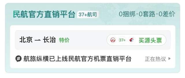 最近,航旅纵横突然在首页挂出了“民航官方直销平台”字样,强调“0差价、0捆绑、0套路”,有网友评论称,“民航版12306来了”“再也没有中间商赚差价了”。