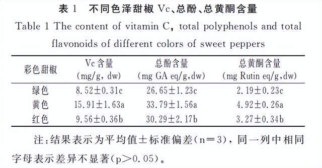 一项发表于《中国调味品》上的研究更为详细地分析了不同颜色彩椒营养成分的差异。通过对不同色泽彩椒的抗氧化成分及性能研究发现,黄色彩椒具有较高的维生素C、总酚、总黄酮含量,同时也具有较强的抗氧化性能,红色次之,绿色最低。