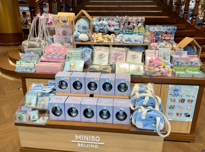北京名创优品壹号店入口处的史迪奇系列产品。图/梁婷婷 摄