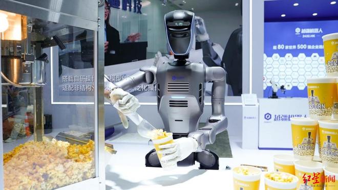 在现场看到,在“接打爆米花”这个高动态任务中,DOBOT AtomⅡ除了能够在狭窄的操作台之间灵活转身,平稳精准地将爆米花倒入盒中递给观众,还能快速回应观众挥手、比心、鼓掌等互动需求。