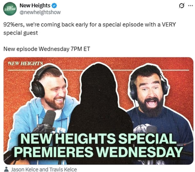 (霉霉男友和他哥哥的播客发消息称将邀请特别来宾。)