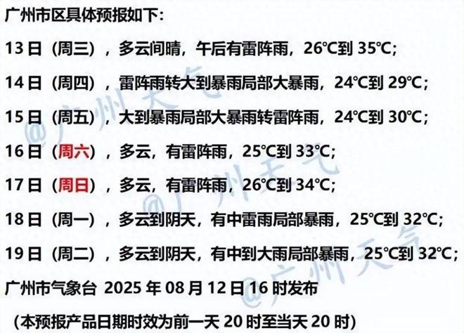 广州市气象台预计,8月13日广州高温炎热伴雷雨天气维持,8月14日—15日受“杨柳”影响,有暴雨到大暴雨过程,并伴有8级左右短时大风、短时强降水、强雷电、局地龙卷等强对流天气。