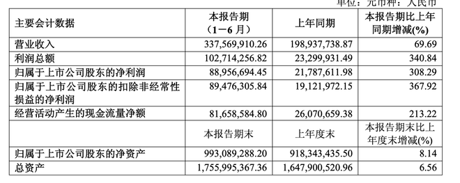 具体来看,2025年上半年,公司实现营业收入3.38亿元,同比增长69.69%;实现归属于上市公司股东的净利润8895.67万元,同比增长308.29%;实现归属于上市公司股东的扣除非经常性损益的净利润8947.63万元,同比增长367.92%。