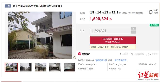 8月20日消息,阿里资产拍卖平台显示,一个高尔夫俱乐部会籍号码将被拍卖,起拍价为159.9324万元。其前主人为深圳新都酒店前董事长李聚全。
