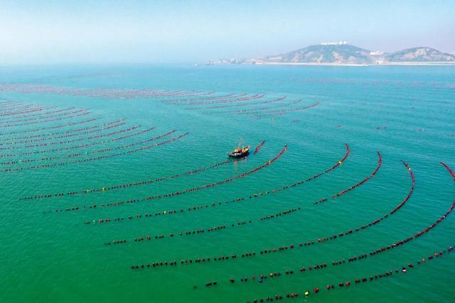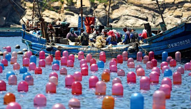 辽宁大连市长海县,海洋岛镇的渔民在海洋牧场上作业。图/新华