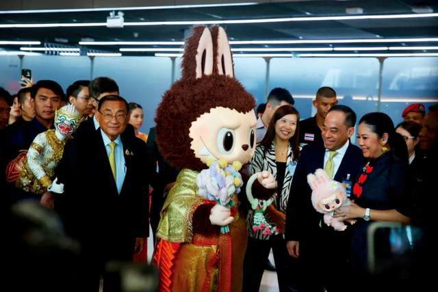 2024年7月1日,拉布布人偶亮相泰国曼谷素万那普机场。图/新华