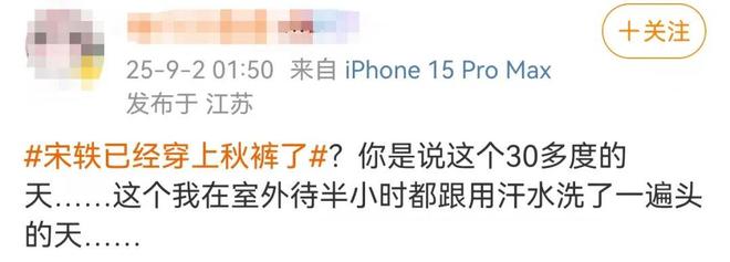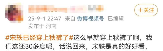 对于穿秋裤,有北方网友表示“秋天的第一个秋裤提醒是宋轶给的”。