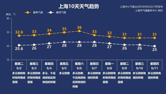下周上海主要处在副热带高压边缘,云量会有所增多,雨水也会频繁起来,好消息是气温降了。