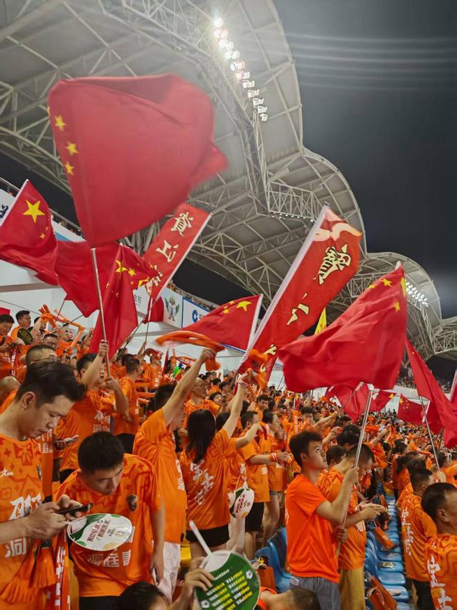夜幕低垂,邵阳体育中心灯火通明,体育场回荡着震天的鼓声和“胜利!胜利!胜利!”的呐喊声,球迷台上,“宝庆”“梆硬”等战旗奋力飘扬,这不仅点燃了现场氛围,更激发了球员们的斗志。