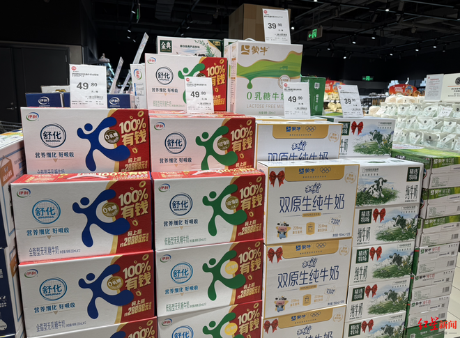 今日,走访了四川省成都市多家永辉超市(601933.SH)、红旗连锁(002697.SZ)等商超,查看了目前超市里售卖的大部分常温纯牛奶,也就是新规定此次明确的灭菌乳。记者查看的产品配料表均合规,仅含有生牛乳,不含复原乳等原料,包括蒙牛乳业(02319.HK)、伊利股份(600887.SH)、菊乐股份(874569.OC)旗下的纯牛奶产品。