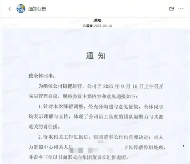 网传匹克降薪通知表示,降薪一事经过充分沟通和意见征集。但多名受访员工表示,发薪日前四天才开会得知降薪,会后无正式文件和一对一沟通。
