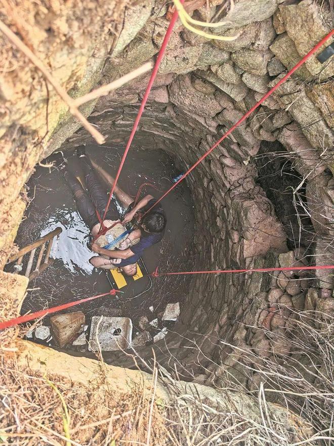 9月13日9时许,覃女士在晋江灵源街道一树林散步时,不慎坠入一口废弃的水井。
