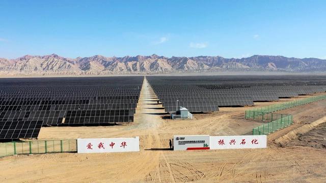 位于新疆天山脚下的中石化新星新疆绿氢公司光电站