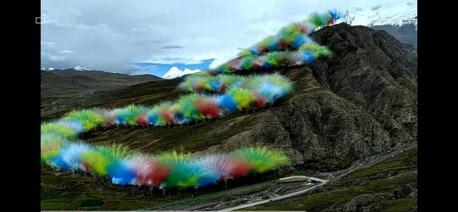 在一个现场流出的21分钟时长视频里,烟花引燃,蔡国强手持话筒在现场说,有点蓝烟紫烟,有点神秘,所以准备进行(下一幕)了。“接下来是3000米的彩龙从天而降,再蜿蜒到水边,沿着雪山融水的小溪向远方奔去,消失在1500米外的视野里。”