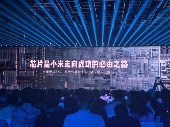 雷军在演讲中表示,芯片是小米走向成功的必由之路,自研手机SoC,至少要坚持十年、至少投入五百亿。