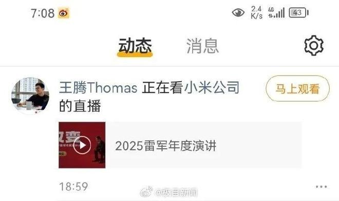 注意到,在上述高管名单中没有王腾。另据极目新闻报道,9月25日晚,微博显示@王腾Thomas正在收看演讲直播。