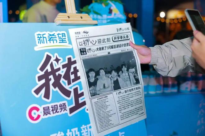 新希望南山初心酸奶的展位人气高涨,摊位前大学生们在这排起了长龙,成为最受欢迎的互动点之一。该展位不仅有丰富有趣的打卡活动,初心酸奶的派送福利吸引了大批用户参与。其中的摊位推出的“开学季头条拍摄打印报纸头条”活动创意十足——参与者可以在摄像机前拍摄自己在集市的照片,即时打印成仿旧报纸的头版头条。许多大学生手握这份特别的纪念品,在摊位前合影留念。