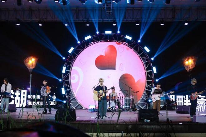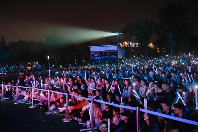 音乐打破了陌生感,素不相识的人们一起合唱《遇见》,音乐成为大家共同的交流方式,旋律在后湖上空回荡。荧光棒与手机灯光如同夜空中的繁星,与舞台交相辉映。不少散步的路人驻足感受,轻轻感叹一句:“青春真好啊!”