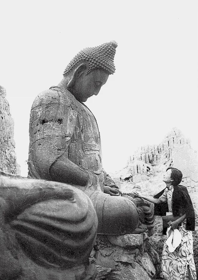 1934年夏,林徽因在山西汾阳县小相村灵岩寺考察时于佛像前留影。