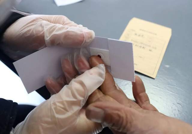 之后便是采血,王宁说,血样采集的标准十分严格,每个支系至少采集三名不同代际男性的血样。采样工作由民警和辅警执行,使用工具包含一次性采血针、酒精棉片和滤纸血卡。标准操作流程要求先用酒精棉片消毒指尖,快速刺破皮肤后,将自然涌出的血滴准确滴在血卡指定圆圈内,待其自然渗透扩散。“我们要求是自然地滴上去,不能用手指涂抹。”王宁强调,“如果血样不合格,实验室会直接退回重采。”