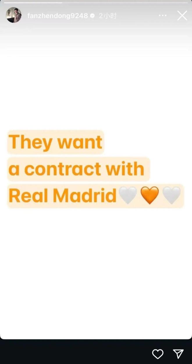 10月3日,樊振东在社交平台分享霉霉新歌中和皇马有关的歌词。