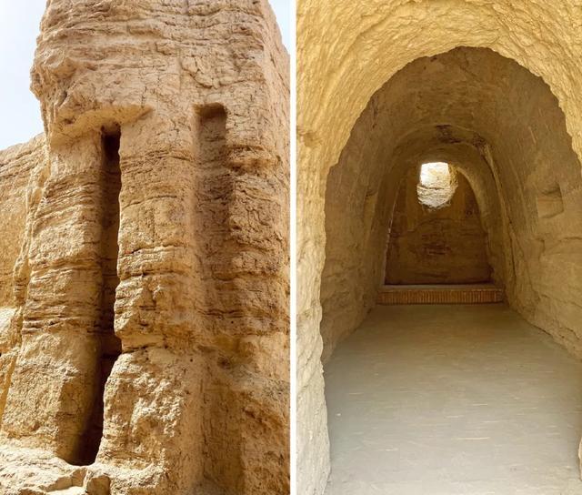 “现在我们就进城了。南城门原来有一个木门,后期因战乱木门被烧毁。”讲解员古丽指着两边城墙上的凹槽说。南门是交河故城的主要出入口,地势险要,有“一人守隘,万夫莫向”的山崖,是当年运送粮草、大军出入的通道。一条宽约10米的笔直中央大路,从南门出发,纵贯全城。