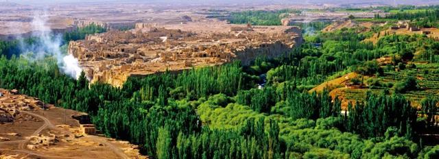 在一半被山包围,一半被大漠戈壁环绕的吐鲁番盆地中,被河谷冲刷切割出的台地平均有30米高,崖岸壁立又陡峭,如果回到冷兵器时代,这里是绝佳的天然军事要塞,易守难攻。唐代诗人李颀曾说,“白日登山望烽火,黄昏饮马傍交河”。