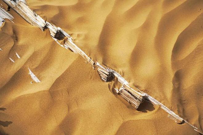 沙漠中的房屋构件。 摄影/本刊记者 倪伟