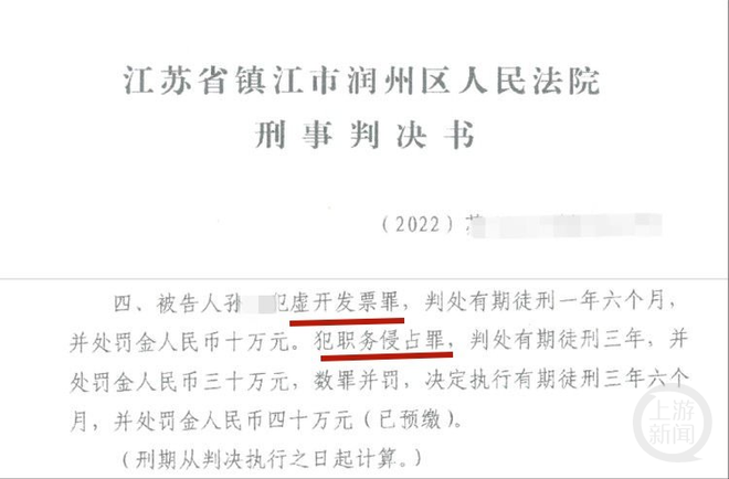 2023年2月,孙某因犯虚开发票罪、职务侵占罪一审被判处有期徒刑三年六个月,并处罚金40万元人民币;朱某某因犯虚开发票罪、单位行贿罪,被判处有期徒刑8年,并处罚金480万元人民币。庭审记录显示,针对虚开发票这一涉案事实,二人均称系对方所为。2024年5月,镇江市中级人民法院二审维持了一审原判。