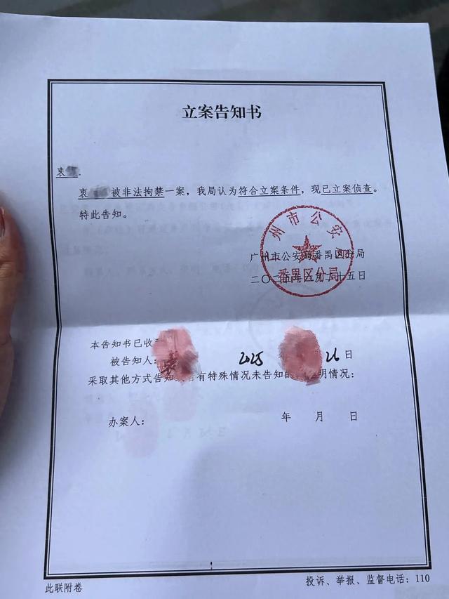 衷女士介绍,弟弟今年23岁,刚大学毕业,兼职做模特,原本要回学校拿毕业证,至今也没能回去。6月26日,她收到了广州市公安局番禺区分局的立案告知书,警方以衷某某“被非法拘禁”,对此立案侦查。