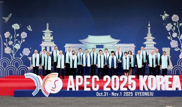 11月1日上午,国家主席习近平在韩国庆州出席亚太经合组织第三十二次领导人非正式会议第二阶段会议,并发表题为《共同开创可持续的美好明天》的重要讲话。会后,与会经济体领导人、代表集体合影。图/新华