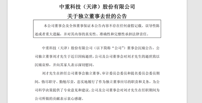 中重科技独立董事刘才逝世,董事会成员变动引发关注,背后真相揭秘!