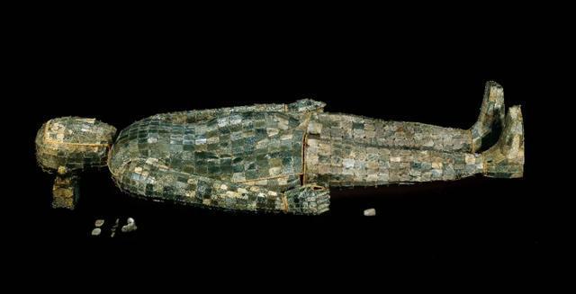 如今,这套中国首次发现、规格最高、最完整的玉制葬衣收藏于河北博物院,属于永久禁止出境的国宝文物。随后发掘的刘胜之妻窦绾墓中,同样发现了金缕玉衣。两套玉衣的做工十分精细,外观形似人体,刘胜的玉衣用玉片2498片,金丝约1100克,窦绾的玉衣稍小,用玉片2160片,金丝约600克。玉片成衣后排列整齐,对缝严密,表面平整,而且按照男女的生理特点分为男款和女款。按照汉代的工艺水平推算,制作一件这样的玉衣,一名熟练的玉器工人要耗费十余年的时间才能完成。