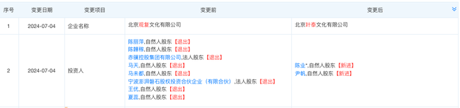 天眼查App显示,2024年7月,“北京观复文化有限公司”变更名称为“北京叶泰文化有限公司”,同时马未都和其子马天等股东退出公司。