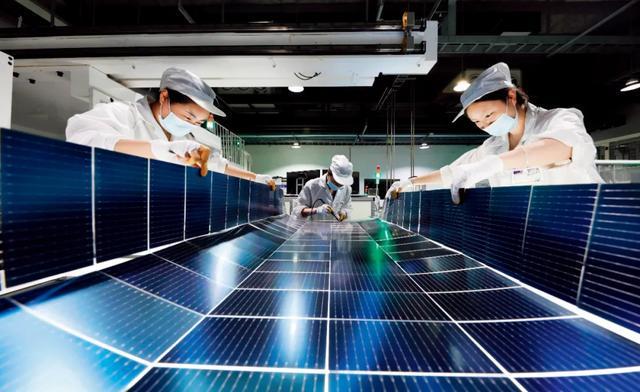 7月22日,江苏宿迁市一家新能源科技公司的光伏组件生产车间。图/中新
